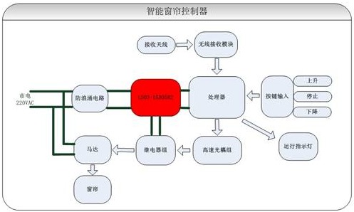 上圖為小體積開關電源產品在智能窗簾控制器中的應用,系統工作情況如下: