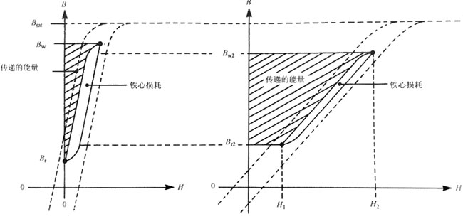 導通期間結束時,大小為1/2Lp·I2(I2為圖中與磁化強度H2相對應的電流)的能量儲存于變壓器磁場中,該能量少于保持在磁心中的能量1/2Lp·I2,并在每個周期傳遞到輸出電路。 總之,設計者必須根據要求的性能和傳遞的功率來選擇工作方式,注意檢查在所有可能負載條件下的工作方式,并準備設計控制環以處理所有實際情況。