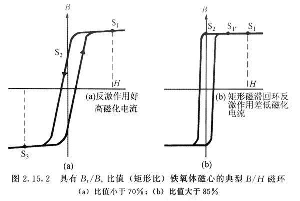 工作原理(增益限制開關(guān)) 圖中所示的電路的工作情況如下。 開始導(dǎo)通時,起始電流經(jīng)R1流向Q1和Q2的基級。此時具有較低V或較高增益的晶體管首先導(dǎo)通,本例中假設(shè)Q1先導(dǎo)通。 由于Q1導(dǎo)通,所有繞組的末端為負(fù)(起始端為正),來自驅(qū)動繞組P2的正反饋使Q的基極更正,而Q2的基極更負(fù)。因此Q1將迅速進(jìn)入全飽和導(dǎo)通狀態(tài)。 現(xiàn)在充電器電壓Vcc加在主變壓器左邊原邊繞組P1兩端,Q1集電極中流過的電流是磁化電流加折算過來的負(fù)載電流。 在導(dǎo)通期間,磁心的磁通密度向著飽和方向增加,如圖中的點(diǎn)S。經(jīng)過由磁心尺寸、飽和磁通值,和原邊匝數(shù)所決定的一段時間后,磁心達(dá)到飽和狀態(tài)。 在S1點(diǎn),H迅速增加,使集電極電流也大量增加。這個過程一直持續(xù)到受到Q1的增益限制,這個限制是防止集電極電流進(jìn)一步增加。在該點(diǎn)磁場H不再進(jìn)一步增加,將不能維持所需的B的變化率(dB/dt)。結(jié)果,原邊繞組兩邊的電壓降低,Q1集電極上的電壓將上升到充電器電壓。