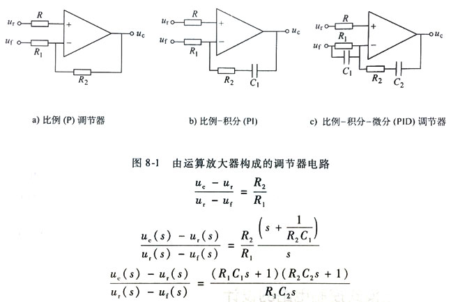 可以看出,P調(diào)節(jié)器具有1個零點,而PID調(diào)節(jié)器具有2個零點。采用P調(diào)節(jié)器,其結(jié)構(gòu)簡單,參數(shù)整定比較容易,但根據(jù)第4章中的對比可以知道這時系統(tǒng)開環(huán)幅頻增益曲線的過零點只能選在低于輸出LC濾波器截止頻率的范圍,因此閉環(huán)系統(tǒng)的響應(yīng)速度較慢。大多數(shù)電源對電壓環(huán)的動態(tài)響應(yīng)速度要求較高,因此通常需要選擇PID調(diào)節(jié)器。