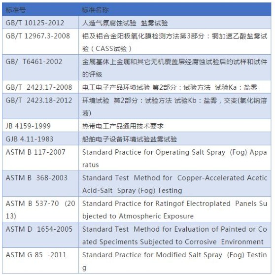 鹽霧試驗相關的標準
