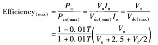 | 直到20世紀(jì)60年代初期,這種簡單的直流耦合串聯(lián)型線性調(diào)整器一直是數(shù)十億美元產(chǎn)值的電源適配器工業(yè)的主要產(chǎn)品。但是,這種電源適配器電路有以下缺陷。 ·這種電源適配器只能降壓。 ·5伏電源適配器的輸出與輸入之間有公共端,當(dāng)輸入和輸出之間,或多路輸出之間需要直流隔離時(shí),電路的設(shè)計(jì)會(huì)變得非常復(fù)雜。 ·其初始直流輸入電壓(即圖1。1(a)中的V)一般由工頻變壓器次級(jí)整流獲得,而工頻變壓器的體積和重量限制了它的推廣應(yīng)用。 ·如1。2。3節(jié)所介紹的,這種電路的效率非常低,造成非常大的功率損耗,需要較大的散熱片。 電源適配器串接晶體管的功率損耗 線性調(diào)整器的主要缺點(diǎn)是串接晶體管存在過大功耗。所有的負(fù)載電流都必須通過串接晶體管,其功耗為(V-V)l。大多數(shù)情況下,串接NPN型晶體管的較小壓差(V。-V)為2。5V。假設(shè)整流濾波電容足夠大,可忽略紋波。若直流輸入電壓由工頻變壓器次級(jí)整流獲得,則次級(jí)匝數(shù)選擇應(yīng)保證交流網(wǎng)壓較低時(shí)對(duì)應(yīng)的次級(jí)整流電壓為(V。+2。5),此時(shí)Q1的損耗較小。 然而,當(dāng)交流網(wǎng)壓較高時(shí)Q1的壓差將大很多,串接晶體管損耗嚴(yán)重,電源適配器效率明顯降低。由于25V較低壓差的存在,在額定輸出電壓較低時(shí)造成的損耗顯得更為嚴(yán)重。 以下15W電源適配器例子可以說明這一點(diǎn)。假設(shè)交流輸入電壓的波動(dòng)范圍為±15%,以下列3臺(tái)線性調(diào)整器為例, ·輸出5v/10A ·輸出15V/10A ·輸出30V/10A ![]() 假設(shè)次級(jí)濾波電容足夠大,整流電壓紋波可忽略。次級(jí)整流獲得的直流電壓V的波動(dòng)范圍與交流網(wǎng)壓波動(dòng)范圍對(duì)應(yīng),均為±15%。若網(wǎng)壓輸入較低(-15%)時(shí),變壓器次級(jí)電壓為(V+2。5),則網(wǎng)壓輸入較高(+15%)時(shí),較大直流輸入電壓為1。35(V,+2。5)。調(diào)整器具體參數(shù)如下。 由上面的數(shù)據(jù)可知,電源適配器直流輸出電壓低時(shí),調(diào)整器的效率比輸出電壓高時(shí)低很多。若不忽略輸入網(wǎng)壓紋波且容許網(wǎng)壓波動(dòng)±15%,則5V輸出調(diào)整器的效率只有32%~35%。 線性調(diào)整器的效率與輸出電壓的關(guān)系 下面將分析效率在下列情況下的變化范圍:電源適配器輸出電壓值從5V到100V,并且電網(wǎng)電壓波動(dòng)范圍從±5%~±15%,考慮實(shí)際紋波。 假設(shè)電源適配器較小壓差是2.5V,并保證在較小輸入網(wǎng)壓產(chǎn)生的輸入紋波的谷值處仍有25V的壓差,如圖1。1(b)所示。據(jù)此,可計(jì)算出不同輸入網(wǎng)壓波動(dòng)范圍和不同輸出電壓下調(diào)整器的效率。 設(shè)輸入電壓為額定電壓的±7%,則工頻變壓器次級(jí)匝數(shù)的選擇應(yīng)保證當(dāng)輸入網(wǎng)壓較小時(shí),紋波的谷值仍比預(yù)期的輸出電壓大2.5V(設(shè)較小壓差為2.5V)。 令電壓紋波的峰一峰值為V,。當(dāng)網(wǎng)壓輸入較低時(shí),輸入到晶體管的直流電壓(平均電壓)為 ![]() 當(dāng)網(wǎng)壓輸入較高時(shí),輸入到晶體管的直流電壓為 ![]() 網(wǎng)壓輸入較高時(shí),輸入功率較大,較惡劣情況下的較大效率為 ![]() 圖所示為紋波電壓峰一峰值為8V時(shí),網(wǎng)壓波動(dòng)高限、輸出電壓和效率的關(guān)系曲線。以后會(huì)提到,對(duì)于60Hz全波整流器,若選取每1A負(fù)載電流對(duì)應(yīng)濾波電容值為1000uF,則紋波電壓峰一峰值為8V。 從圖可見,即使電源適配器輸出電壓為10V,對(duì)于典型的±10%網(wǎng)壓波動(dòng)值,效率已低于50%。正是線性調(diào)整器的低效率和工頻變壓器笨重的缺陷促進(jìn)了開關(guān)電源適配器的研制和開發(fā)。 當(dāng)然,若能使初始直流電壓得到±5%左右的預(yù)調(diào)整(后面介紹的大部分拓?fù)涠紳M足這一點(diǎn)),而輸出又需要進(jìn)一步穩(wěn)壓,則應(yīng)用線性調(diào)整器還是合理的?,F(xiàn)在市場上有1。5A塑封集成線性調(diào)整器,價(jià)格約為50美分。也有3~5A價(jià)格稍貴金屬封裝的該類調(diào)整器,但內(nèi)置串接晶體管的功耗很大,輸出5A或以上時(shí)的功耗更加嚴(yán)重。 ![]() 12w電源適配器線性調(diào)整器效率與輸出電壓的關(guān)系曲線(根據(jù)式1。2,式中濾波電容紋波電壓峰峰值取8V)。可見,電源適配器若對(duì)交流輸入V。較低(網(wǎng)壓波動(dòng)低限輸入)時(shí)對(duì)應(yīng)紋波谷值保證2。5V壓差,則交流輸入V較高時(shí),效率較低。
