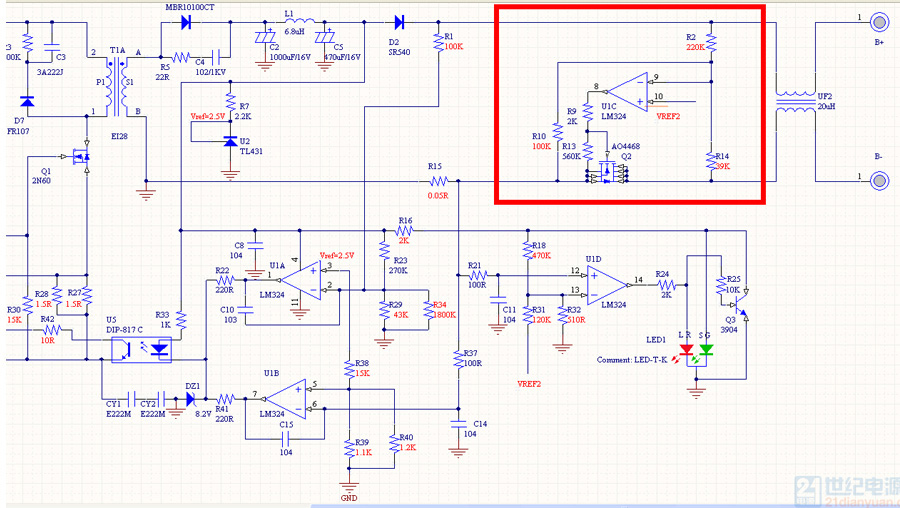筆記本電腦充電器電路圖中方框部分的作用,電路分析