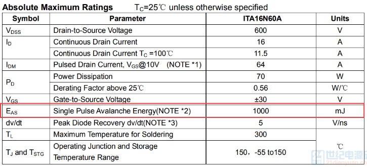圖316N65A VD-MOSFET EAS=1000mJ          圖416N65A 規格書極限參數 EAS=1000mJ
