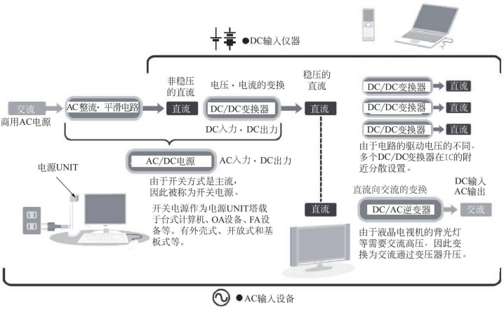 | 1.電源適配器種類 電能是由水力、風力、海潮、太陽能等可再生能源和煤炭、油、天然氣及核能等轉換而成的,人們把可提供電能的裝置稱為電源適配器。通常把電源適配器分為一次電源適配器和二次電源適配器。 (1)一次電源適配器 一次電源適配器按轉換成電能的能源形式分為:水力發(fā)電、火力發(fā)電、風力發(fā)電及核能發(fā)電,通常將一次電源適配器俗稱電網或市電。 (2)二次電源適配器 二次電源適配器是對已有的電源適配器進行控制,即在電能傳輸過程中,在一次電源適配器與負載之間對電能進行變換或穩(wěn)壓。二次電源適配器按輸出可分為:交流穩(wěn)壓電源適配器和直流穩(wěn)壓電源適配器,如圖1-1所示。交流穩(wěn)壓電源適配器有參數調整(諧振)型、自耦(電壓比)調整型和開關型交流穩(wěn)壓電源適配器。直流穩(wěn)壓電源適配器按習慣可分為化學電源適配器、線性穩(wěn)定電源適配器和開關型直流穩(wěn)壓電源適配器。 ![]() 2.直流穩(wěn)壓電源適配器 (1)化學電源適配器 化學電源適配器將電能以化學能的形式儲存起來,使用時再將化學能轉換為電能供給負載,如日常所用的干電池、鉛酸蓄電池、鎳鎘電池、鎳氫電池、鋰離子電池均屬于這一類,化學電源適配器各有其優(yōu)缺點。隨著科學技術的發(fā)展,目前又研發(fā)出了智能化電池;在充電電池材料方面,美國研究人員發(fā)現錳的一種碘化物,用它可以制造出成本低、小巧、放電時間長,多次充電后仍能保持性能良好的環(huán)保型充電電池。 (2)線性穩(wěn)定筆記本電源適配器 線性穩(wěn)定電源適配器有一個共同的特點就是它的功率器件(調整管)工作在線性區(qū),靠調整管之間的電壓降來穩(wěn)定輸出。由于調整管靜態(tài)損耗大,需要安裝一個很大的散熱器給它散熱。而且由于變壓器工作在工頻(50Hz)上,所以質量較大。該類電源適配器的優(yōu)點是穩(wěn)定性高、紋波小、可靠性高,易做成多路輸出、輸出連續(xù)可調的產品;缺點是體積大、較笨重、效率相對較低。線性穩(wěn)定電源適配器按輸出性質可分為穩(wěn)壓電源適配器和穩(wěn)流電源適配器及集穩(wěn)壓、穩(wěn)流于一身的穩(wěn)壓穩(wěn)流(雙穩(wěn))電源適配器;按輸出值可分為定值輸出電源適配器、波段開關調整式和電位器連續(xù)可調式幾種;按輸出指示可分指針指示型和數字顯示式型等。 (3)開關型直流穩(wěn)壓電源適配器 開關型直流穩(wěn)壓電源適配器的電路形式主要有單端反激式、單端正激式、半橋式、推挽式和全橋式。它和線性電源適配器的根本區(qū)別在于它的變壓器不工作在工頻而是工作在幾十千赫茲到幾兆赫茲;功能管不是工作在飽和及截止區(qū),而是工作在開關狀態(tài)(開關電源適配器也因此而得名)。開關電源適配器的優(yōu)點是體積小,重量輕,穩(wěn)定可靠;缺點相對于線性電源適配器來說是紋波較大(一般≤1%U0(P-P),好的可做到十幾毫伏(峰-峰值)或更小)。它的功率可自幾瓦至幾千瓦。 3.開關電源適配器分類 現在,電子技術和應用迅速發(fā)展,對電子儀器和設備的要求是:性能上要更加安全可靠,功能上要不斷地增加,使用上自動化程度要越來越高,體積上要日趨小型化。這使采用具有眾多優(yōu)點的開關電源適配器就顯得更加重要了。所以,開關電源適配器在計算機、通信、航天、家電等方面都得到了越來越廣泛的應用,發(fā)揮了巨大的作用,這大大促進了開關電源適配器的發(fā)展,從事這方面研究和生產的人員也在不斷地增加,開關電源適配器的品種和類型也越來越多。 (1)開關電源適配器按結構分類 開關電源適配器按結構可分為以下幾類: ①AC/DC變換器。AC/DC變換器從電網取得能量,經過高壓整流濾波得到一個直流高壓,在AC/DC變換器的輸出端可獲得一種或幾種穩(wěn)定的直流輸出電壓。AC/DC變換器有寬輸入、多路輸出等多種類型,其功率范圍:5~5000W。在通信系統中也稱AC/DC變換器為一次電源適配器,屬此類產品的規(guī)格型號繁多,AC/DC變換器產品類型如圖所示。