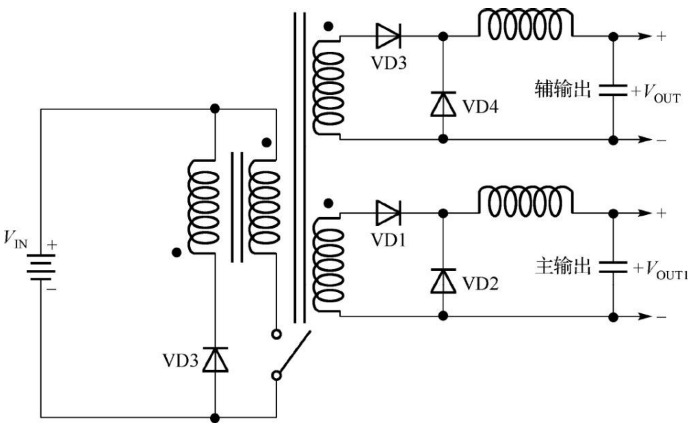 當單管正激拓撲的主變壓器具有不止一個次級輸出繞組時,其次級繞組就具有了主輔之分。所謂的主輸出繞組,是指該電源適配器的全部輸出(指+VOUT1、+VOUT2)的穩壓過程都是依賴于主輸出繞組的輸出(指+VOUT1)進行的。換句話說,電源適配器的次級穩壓(反饋)電路只針對主輸出的+VOUT1進行穩壓采樣,采樣的結果將直接影響+VOUT1的實際輸出電壓大小。而+VOUT2的實際輸出大小則會被動地根據+VOUT1的實際輸出電壓大小的變化而變化。通俗地說,在單管正激拓撲電源適配器中,只有主輸出的電壓是能夠精確控制的,而輔輸出的電壓則會隨主輸出的負載變化在某個范圍內變化。這顯然不是電源的設計者所期望的,我們所期望的是所有輸出電壓(甚至電流)均可精確控制(不論負載大小)的電源。如何解決這個問題呢?常識告訴我們,這很可能會涉及某些其他的變電技術及電路。