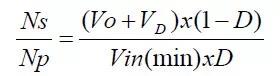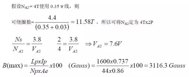 依據變壓器的圈比關系,可以初步計算出變壓器的應力(Stress)是否符合選用零件的規格,計算時以輸入電壓264V(電容器上為380V)為基準。
