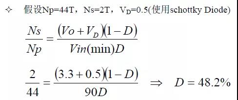 由以下公式可決定Duty cycle ,Duty cycle的設計一般以50%為基準,Duty cycle若超過50%易導致振蕩的發生。