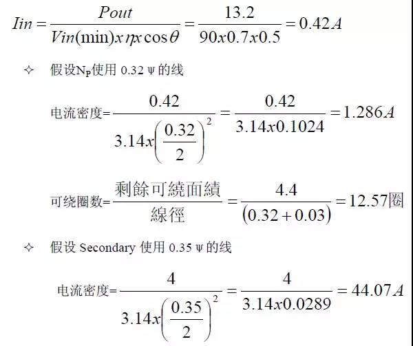 當變壓器決定后,變壓器的Bobbin即可決定,依據Bobbin的槽寬,可決定變壓器的線徑及線數,亦可計算出線徑的電流密度,電流密度一般以6A/mm2為參考,電流密度對變壓器的設計而言,只能當做參考值,后面應以溫升記錄為準。