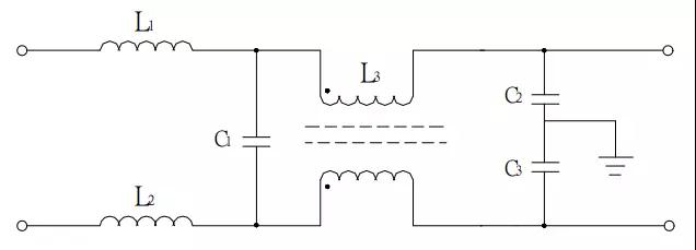 圖中L1、L2、C1構成常模濾波器,L3、C2、C3構成共模濾波器。