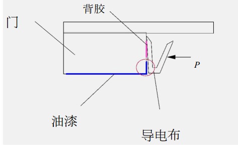 公司某產(chǎn)品在沒有組網(wǎng)的情況下,僅僅連接了地線和電源線后通電進(jìn)行輻射發(fā)射測(cè)試, 結(jié)果發(fā)現(xiàn)在 55~70MHz、 160~170MHz 等多處超出 classB 級(jí)限值線。 先仔細(xì)檢查該產(chǎn)品的地線、 電源線, 地線直接接在機(jī)柜底板上不會(huì)引起輻射, 電源線上已經(jīng)加置濾波器且濾波器安裝正確,在以往測(cè)試中這樣的電源線也不會(huì)產(chǎn)生輻射。機(jī)柜頂部有一空調(diào)由機(jī)柜內(nèi)部交流供電, 空調(diào)也可能產(chǎn)生輻射, 將空調(diào)關(guān)電, 結(jié)果輻射沒有減少。 綜上所述,可以判定機(jī)柜屏蔽有問題。 機(jī)柜門上已經(jīng)貼了 L 型帶背膠與彈性內(nèi)芯的導(dǎo)電布, 按照以往的經(jīng)驗(yàn),在門與門框之間粘貼導(dǎo)電材料是可以解決門縫泄漏問題的, 懷疑門縫間隙太大,我們?cè)跈C(jī)柜門框上再增加一層 L 型導(dǎo)電材料,居然無效果。我們自制了一個(gè)簡(jiǎn)易的磁場(chǎng)探頭, 和HP8591EM 分析儀及放大器相連組成EMI 診斷設(shè)備, 結(jié)果發(fā)現(xiàn)門縫使用導(dǎo)電布之后確實(shí)還存在很大的電磁泄漏。 仔細(xì)觀察門結(jié)構(gòu),發(fā)現(xiàn)問題如下:導(dǎo)電布靠背膠粘貼在門的側(cè)面, 背膠是不導(dǎo)電的,當(dāng)關(guān)門時(shí)靠壓力 P 使導(dǎo)電布后部與門保持電接觸。 但本機(jī)柜門側(cè)邊粘貼導(dǎo)電布的部位,油漆涂得比較靠?jī)?nèi)(如圖中紅色圈所示),使得導(dǎo)電布后部無法與機(jī)柜金屬體接觸上。