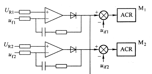 因此必須使系統能自動選主,基本思想還是通過均流母線進行仲裁,具體電路見圖? 在自動選主的主從均流方式中,各電源適配器的電壓調節器都處于工作狀態,其輸出通過均流母線仲裁出較大值?這樣輸出值較高的調節器就成了主調節器,其他調節器處于跟隨狀態?同時均流 母線還給各電源適配器傳遞了電流給定信號?因此,在該均流方式下,均流母線具有雙重作用。 自動選主的主從均流方式保持了均流精度高和穩壓精度高的優點,而且在主電源適配器失效后,剩余的電源適配器能自動仲裁出新的主電源適配器,不影響系統正常工作。