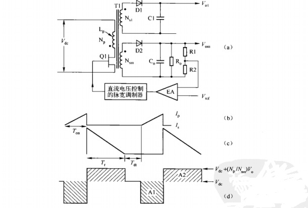 | 在設計反激式電源適配器時,我發現有很多工程師和學生,存在很大的困難。實際上這種拓撲非常實用,而且設計也并不難。 問題并不在于電源適配器設計本身的難處,或是學生的能力,而是與傳統設計的教學方式有關。 從反激變壓器設計的第一步開始,就定下了錯誤的思維定勢,設計者常常把“反激變壓器”當成真正的變壓器來設計,這正是問題所在。 對于變壓,我們已經非常熟悉,它是一種非常簡單的設備——初級繞組上施加一定的電壓,次級繞組上就可以得到相應的電壓。電壓比率與匝比相同,與輸出(負載)電流無關。換句話講,變壓器保證初次級電壓的轉換比率(初級繞組為1V/匝,從而使次級繞組電壓也為IV/匝。如果需要得到10V電壓,用10匝次級繞組即可實現,原理非常簡單。)但是,需要注意變壓器的一個很重要的特性,初級與次級同時導通。即電流從初級繞組的正極性流進,則同時從次級繞組的正極性流出。 反激電源適配器的基本電路圖如圖所示。 ![]() 值得注意的是,在開關管Q1導通期間,電流流進變壓器T1的初級繞組,而此時次級二極管不導通故次級無電流流過。當開關管Q1關斷時,初級電流停止,所有繞組電壓反向。這種反激電壓使得輸出二極管及次級繞組導通,并流過電流。所以“反激變壓器”的初級與次級繞組在不同的時刻導通并流過電流,這種差異很明顯地改變了“反激變壓器”的工作原理。 讓我們分析“反激筆記本電腦充電器”工作模式。當開關管Q1導通時,只有初級繞組導通(其他繞組因未導通,可暫不考慮其對初級電壓的影響),此時,開關管可認為只是給電感儲存能量。當開關管Q1關斷時,只有次級繞組導通,分析時可暫不考慮初級繞組對次級的影響(此時,次級可認為只是電感放電過程)。所以,“反激變壓器”與真正變壓器有什么樣的不同,就顯而易見了。所謂的“反激變壓器”,從功能上考慮,實際上只是有著若干繞組的電感而已。 這種不止一個繞組的電感工作原理是,初級與次級的安匝比守恒(而不是像真正的變壓器一樣,電壓比守恒)。例如,初級繞組100匝,開關管Q1關斷時的峰值電流為1A,存儲在初級的安匝數為100安匝。這個數值必須等于次級的安匝數,若次級繞組為10匝,則電流應為10A(10T×10A=100安匝)。同樣,1匝次級繞組將會有100A的峰值電流,1000匝次級繞組對應于0.1A的峰值電流。 這種情況下,電壓方面的關系又如何呢?首先需要說明的是,初次級繞組電壓并不相關次級繞組電壓只與負載有關。假設次級繞組安匝數為100,匝數為10,則峰值電流為10A,如上節例子所述。如果將次級繞組與19負載相連則可得到10V的次級電壓。如果將這樣的次級繞組與1009的負載相連,則可以在次級得到不可思議的1000電壓,這就是之所以反激拓撲在高壓應用場所得到普遍應用的原因(不得將次級開路,會導致半導體元件損壞)。當次級有幾個繞組同時導通時,則所有次級繞組的安重數之和與初級安匝數守恒。 根據以上所述可知,“反激變壓器”實際上是以電感的特性工作,所以就需要采用電感的設計原理進行設計(因為磁心同時需要承載電流的直流和交流成分,故第7章中名詞采用扼流圈代替電感)。所以說,假若較初“反激變壓器”可以根據其功能正確命名為“反激扼流圈”,那現在就不會有那么多的疑惑了。 但是我們都知道,初級與次級繞組就算是不同時導通,它們之間也會存在電壓轉換關系。還是采用上面的實例,10匝的次級繞組加在100負載之上,次級繞組上電壓為1000V。這1000V電壓將會折射到初級繞組,其折射電壓值為1000,加上輸入電壓100V,開關管在關斷期間將會承受10100V的電壓(耐壓11000V的開關管,超過現有的工藝水平)。所以在現實中很難實現,但是理論上可行。 所以,當我們在設計“反激變壓器”時,需要注意以下幾點。 ①記住你不是在設計一個變壓器,而是有著多繞組的扼流圈。 ②初級繞組匝數需要滿足AC電壓應力(伏秒數)和磁心飽和特性 ![]() 其中,N,是較小的初級匝數,V是較大的初級直流電壓(V),7是開關管Q1的較大導通時間(μs),B是AC磁通密度變化的峰一峰值(特斯拉),鐵氧體典型值為200mT,A為磁心中心柱的有效面積(mm2)。 ③次級繞組可靈活選擇。如果次級繞組每匝電壓值與初級相同,則開關管Q上的反激電壓為輸入電壓的兩倍。 ④當使用帶有磁隙的鐵氧體磁心時,較小的磁隙長度必須保證在流過交流和直流勵磁電流和時,磁心不能飽和。而在更多的情況下,磁隙長度的選擇是為了滿足能量轉換的要求,這樣經常會導致磁隙長度超過了其需求的較小長度。初級繞組儲存的能量為 E(焦耳)=1/2LI2 這是攝像機電源適配器初級能夠傳送到次級的較大能量,而且只是在斷續(完全能量傳遞)的工作模式。在連續的工作模式,只有部分能量被傳送。 注意:減小電感值L,看上去可以減少初級儲在的能量,但是在電感減小的同時,電流/會以相同的比例增太。又因為能量與電流/的平方值成正比,所以減小電感值,其實初級儲存的能量實際上是增加的。 ⑤不推薦一味地設計出某一固定的電感值,而較好是電感值能夠在磁隙長度或是磁心材料(磁導率)改變時可以有相應的變化裕量。