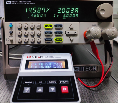 | 今年是USB 充電器爆發的一年。無論是手機、平板、還是筆記本電腦,越來越多的消費類電子產品都不約而同的用上了TYPE-C接口,支持USB PD充電協議。 一款快充充電器好不好,首當其沖的肯定是兼容情況,其次是輸出帶載能力。 較近購買一款小米45W的PD充電器,同時兼容QC2.0、QC3.0快充協議。 市面上多數電子負載并不支持快充協議,而艾德克斯電子新出的IT-E255A快充控制盒卻可以搭配目前多數電子負載進行快充協議的測試。 這個小小的快充控制盒不僅支持QC2.0/QC3.0/PE/PE2.0/USB PD,更重要的是竟然可以和艾德克斯的IT8500+系列的電子負載通信,設定負載的拉載模式和拉載值。 下面就和小伙伴們一起分享小米USB-C充電器的測試。 1.開始準備階段 IT-E255A的輸入口有Mini-USB和TYPE-C 2個接口。 充電器插入口,IT-E255A連上電子負載,測試就可以開始嘍。 1.1 IT-E255A自動進行充電器協議檢測,Type-C輸出口支持USB PD2.0 、QC3.0、QC2.0三種快充協議。 1.2 從IT-E255A顯示屏中可以看出,小米USBPD充電器的快充協議版本為2.0,支持5V/3A、9V/3A、12V/3A、15V/3A、20V/2.25A五個輸出檔位。 1.3 在5V/3A、9V/3A、12V/3A、15V/3A、20V/2.25A五個PD輸出檔位,分別拉載較大的電流,測試其在不同檔位下輸出的電壓和輸出功率。 ![]() 歐規充電器測試接線圖(小米充電器+ 艾德克斯IT-E255A + 艾德克斯IT85150) USB PD 2.O POS1 5V/3A ![]() USB PD 2.O POS2 9V/3A ![]() USB PD 2.O POS3 12V/3A ![]() USB PD 2.O POS4 15V/3A ![]() USB PD 2.O POS5 20V/2.25A ![]() 2.手動按鍵按下“Mode”,選擇QC3.0,點擊“START”,IT-E255A則可誘導小米USB-C充電器從5.0V開始以0.2V的步進值步進,充電器可按照快充控制盒的設定值輸出。 2.1 在QC3.0模式下,誘導充電器輸出6.0V、7.0V、8.0V、9.0V,分別使用電子負載恒流模式拉載,測試其電壓、輸出功率。 ![]() 3. 如果不喜歡手動操作,還可以使用上位機軟件控制。 使用USB數據線將IT-E255A和計算機相連。下載相應免安裝的上位機軟件,打開后就可以使用。 下面做了兩個測試:QC2.0 9.0V輸出: QC2.0 12.0V輸出: ![]() 操作清晰簡易,可以顯示拉載的電壓、電流、功率的波形曲線,自由控制電子負載, 另外還可以設置list自動測試,快速進行判斷、OCP測試等。此外還可以下載到快充控制盒中,與電腦脫機使用,一鍵操作,非常快捷。