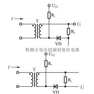 電流互感器檢測具有能耗小、頻帶寬、信號還原性好、價格低、控制電路和主功率電路隔離等諸多優點。在Push-Pull、Bridge等雙端變換器中,功率變壓器原邊流過正負對稱的雙極性電流脈沖,沒有直流分量,電流互感器可以得到很好的應用。但在Buck、Boost等單端應用場合,開關器件中流過單極性電流脈沖,原邊包含的直流分量不能在副邊檢測信號中反映出來,還有可能造成電流互感器磁芯單向飽和。為此,需要對由電流互感器構成的檢測電路進行一些改進。