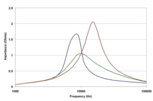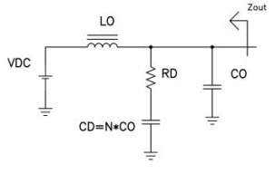 但是,在大多 數情況下,這樣做會導致功率損耗過高。 另一種方法是在濾波器電感的兩端添加 一個串聯連接的電感和電阻有趣的是,一 旦選擇了四個其他電路組件,那么就會有 一個阻尼電阻的較佳選擇。圖 2 顯示的 是不同阻尼電阻情況下這類濾波器的輸 出阻抗。紅色曲線表示過大的阻尼電阻。 請思考一下極端的情況,如果阻尼電阻器 開啟,那么峰值可能會非常的高,且僅由 CO 和 LO 來設定。藍色曲線表示阻尼電 阻過低。如果電阻被短路,則諧振可由兩 個電容和電感的并聯組合共同設臵。綠色 曲線代表較佳阻尼值。利用一些包含閉型 解的計算方法(見參考文獻 1)就可以很輕 松地得到該值。