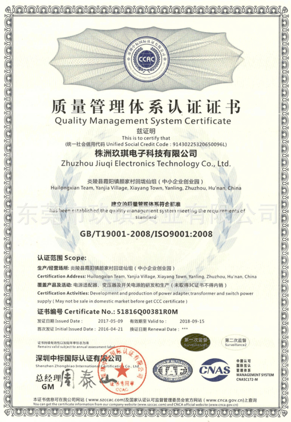 株洲玖琪ISO體系證書(shū)